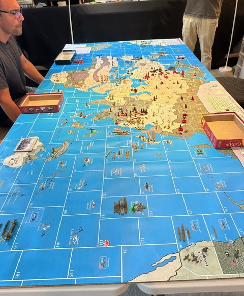 Global Struggle: WWII is an 8-12 hour Strategic WW2 game with either a 1939 start (12 turns) or 1941 start (8 turns). The game features 6 month turns that follow a historical timetable putting pressure on both the Axis and the Allies to beat their historical progress to win the game. The Axis may win by offensively performing significantly better than they did historically or may “win” by losing slower than they did historically. This game offers technology, construction, and political options in the form of card-driven dynamics which makes every game filled with unique player decisions. This game is a simpler version of our “Struggle for Europe 3.0” design that can be played in a day. The game board measures 4’x8′.